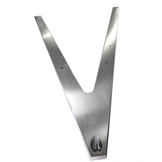 Jedná sa o obrábanie príslušenstva z hliníkových zliatin pre automobilový stroj. Presný otvor na hliníkovej rohovej doske vyžaduje sklon. Pretože tvar dielu je podobný ako u pravítka s ostrým uhlom, požiadavky na toleranciu rovinnosti vedú k riziku spracovania. Jeho rovinnosť a kolmosť je do 0,02 mm a všetky otvory pre príslušenstvo sú sklonené a veľmi prísne k povrchu bez akýchkoľvek defektov, odhrotovania a udržiavania ostrosti.